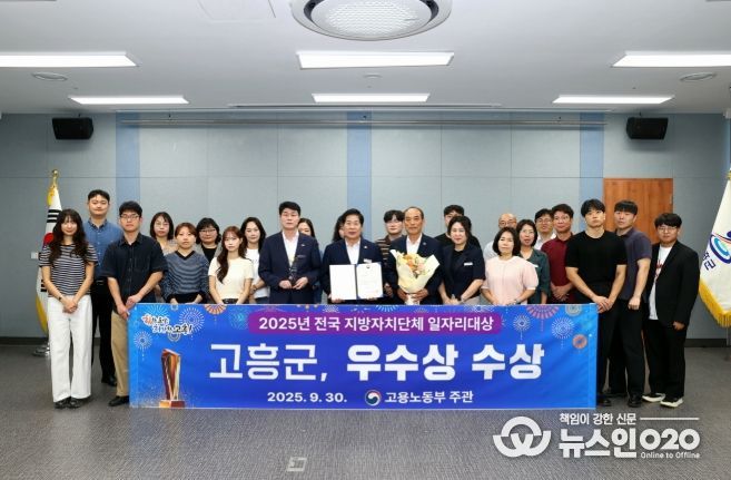 (뉴스인020 = 김성길 기자) 고흥군은 고용노동부가 주관한 ‘2025년 전국 지방자치단체 일자리대상’에서 “우수상”을 수상하는 영예를 안았다고 2일 밝혔다.