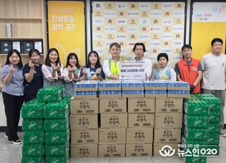 (뉴스인020 = 김성길 기자) 안성시노인복지관은 롯데칠성음료 안성1공장으로부터 음료를 후원받았다고 30일 밝혔다.