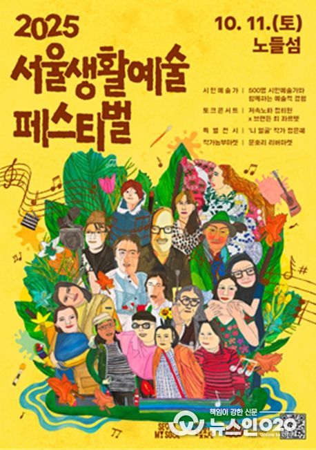 (뉴스인020 = 김성길 기자) 서울문화재단(대표이사 송형종)은 오는 11일 오후 1시부터 8시까지 한강 노들섬에서 '2025 서울생활예술페스티벌'을 개최한다. ‘예술로 물들이는 가을, 생활로 스며드는 예술’을 주제로, 서울시 문화정책인 ‘문화약자와 동행하는 동행축제, 시민과 함께하는 문화도시 조성’에 발맞춰, 시민이 주인공이 되는 시민참여형 생활예술축제로 선보인다.