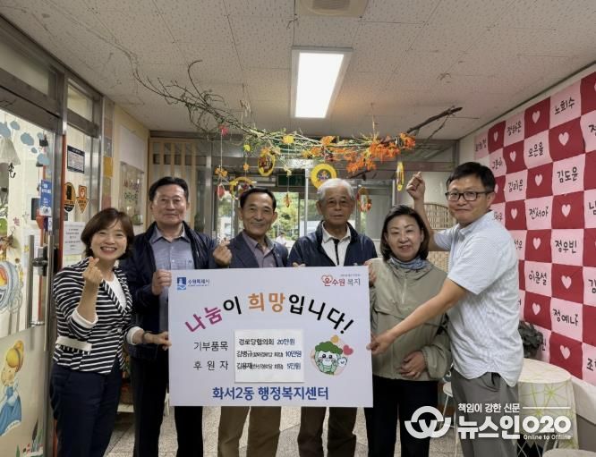 (뉴스인020 = 기자) 수원특례시 화서2동은 지난 10월 2일, 화서2동 경로당협의회가 민족 대명절 추석을 앞두고 지역의 어려운 이웃을 위해 현금 20만원을 기부했다고 밝혔다.