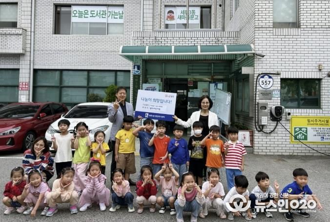 (뉴스인020 = 기자) 홍익 어린이집 원아들이 지난 10월 2일, 아나바다 장터를 운영하여 마련한 95만원 수익금을 세류3동의 어려운 이웃들을 돕기 위해 세류3동 행정복지센터에 전달했다.