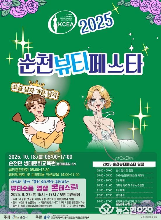 (뉴스인020 = 김성길 기자) 순천시는 오는 18일 순천만생태문화교육원에서 ‘2025년 순천 뷰티페스타’를 개최한다고 밝혔다.