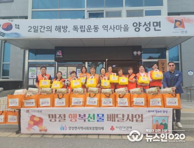 (뉴스인020 = 김성길 기자) 안성시 양성면지역사회보장협의체는 2025년 추석명절을 맞이하여 지난 2일 목요일, 관내 저소득층 및 복지사각지대 35가구에게 송편과 생필품으로 구성된 추석명절 행복선물꾸러미를 전달했다.