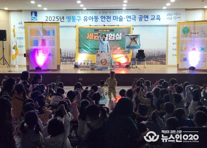 (뉴스인020 = 기자) 수원시 영통구는 2025. 10. 13. 영통구청 대회의실에서 관내 유아를 대상으로 안전한 위생 습관을 형성하기 위한 ‘찰리박사의 세균실험실’ 체험형 안전마술·연극 공연 교육을 실시했다.