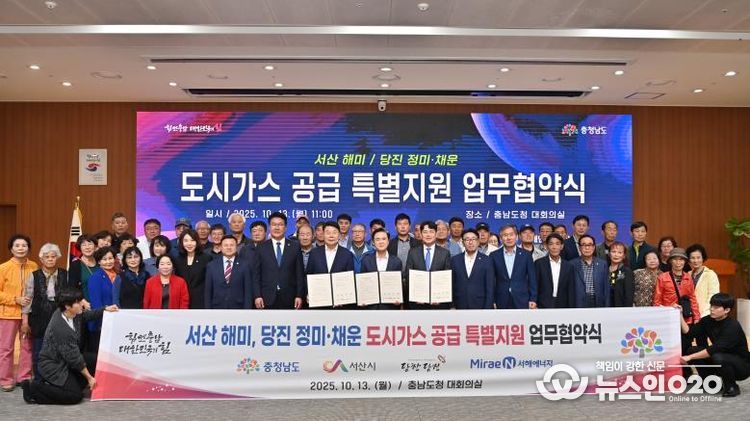 (뉴스인020 = 김성길 기자) 충남도가 오는 2027년부터 서산 해미면과 당진 정미면·채운동 558세대에 도시가스를 공급, 도민 에너지 복지를 강화한다.
