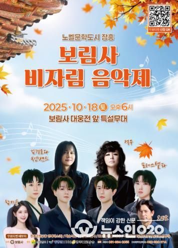 (뉴스인020 = 김성길 기자) 장흥군은 오는 10월 18일 보림사에서 ‘노벨문학도시 장흥, 보림사 비자림 음악제’를 개최한다고 전했다.