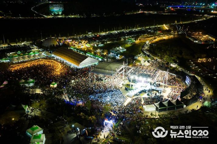 개막 주제공연 창작뮤지컬 ‘왕후, 장화’, 트로트 가수들의 축하공연, 뮤지컬 배우들과 함께한 뮤지컬 빅쇼, 젊은 청년세대를 겨냥한 케이팝 콘서트, 모든 음악 장르가 어우러진 올어바웃뮤직, 박지현과 린이 장식한 폐막 축하공연까지 주무대 관객석은 물론 잔디광장까지 매일 밤 방문객들로 인산인해를 이뤘다.