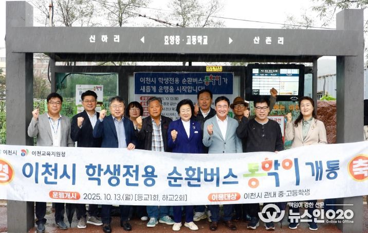 (뉴스인020 = 김성길 기자) 경기도이천교육지원청은 10월 13일, 이천시와 함께 이천 관내 중·고등학생들의 안전한 통학을 지원하는 학생통학 순환버스 ‘통학이’ 개통식을 열고 시범운행을 시작했다.