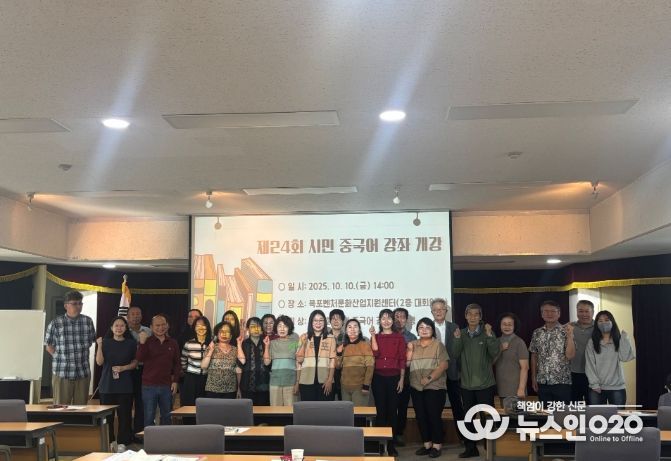 (뉴스인020 = 김성길 기자) 목포시는 지난 10월 10일 목포벤처문화산업지원센터에서 ‘제24회 시민 중국어 무료강좌’ 개강식을 열고 본격적인 강의를 시작했다.