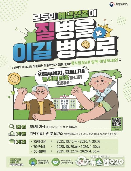 (뉴스인020 = 김성길 기자) 서울시가 오는 15일부터 어르신을 대상으로 독감(인플루엔자)과 코로나19 예방접종을 무료로 실시한다. 65세 이상 어르신은 독감(인플루엔자)과 코로나19 예방접종 대상에 모두 해당하므로 편리하게 한 번의 의료기관 방문으로 두 가지 백신을 동시 접종할 수 있다.