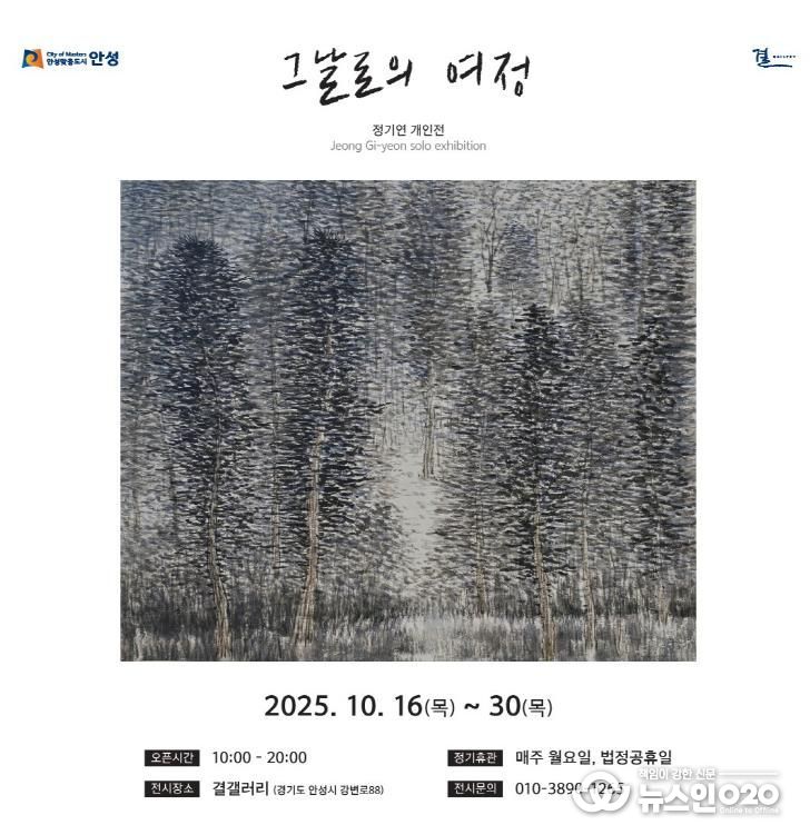 (뉴스인020 = 김성길 기자) 사계절의 변화를 수묵의 농담으로 담아내는 정기연 작가가 오는 10월 16일부터 10월 30일까지 개인전을 개최한다. 계절의 흐름 속에서 느낀 생명의 움직임을 단순한 감상의 차원을 넘어, ‘표현하고 나누는 예술의 순간’으로 풀어낸 작품들을 선보인다.