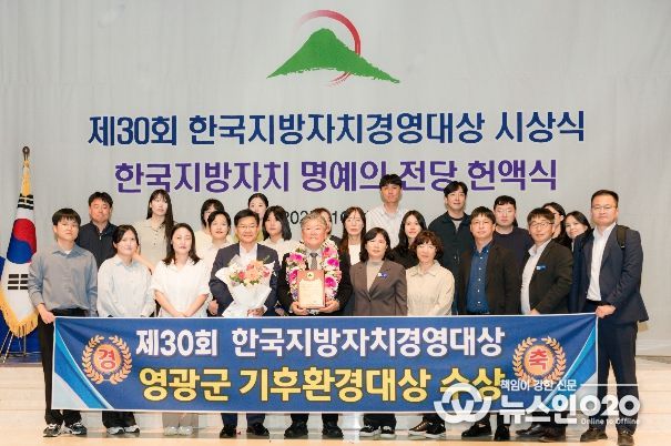 (뉴스인020 = 김성길 기자) 영광군이 지난 14일 (사)한국공공자치연구원이 주관한 ‘제30회 한국지방자치경영대상’에서 기후환경대상을 수상했다.