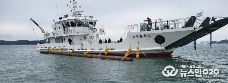 (뉴스인020 = 김성길 기자) 충남도는 보령 허육도 남서방 해상에서 운항 선박의 안전을 위협하던 항만 공사용 기초파일(쇠말뚝) 1개를 14일 오전 인양했다고 밝혔다.