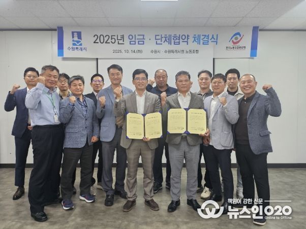 (뉴스인020 = 기자) 수원특례시는 14일 수원시청 노동조합(환경관리원)과 ‘2025년 임금 및 단체협약’을 체결했다.