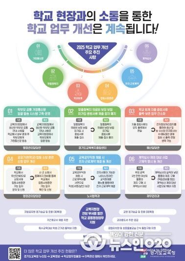 (뉴스인020 = 김성길 기자) 경기도교육청이 ‘2025년 학교업무개선 성과 공유회’ 운영으로 도교육청-학교-교육지원청의 긴밀한 소통에 힘쓴다. 학교 업무 경감 및 효율화 사업의 체감도를 높이고, 2026년의 정책 방향을 설정하기 위해 마련한 자리다.