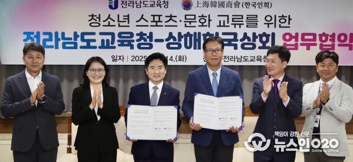 (뉴스인020 = 김성길 기자) 전라남도교육청은 14일 상해한국상회와 ‘청소년 스포츠·문화 교류를 위한 업무협약(MOU)’을 체결했다.