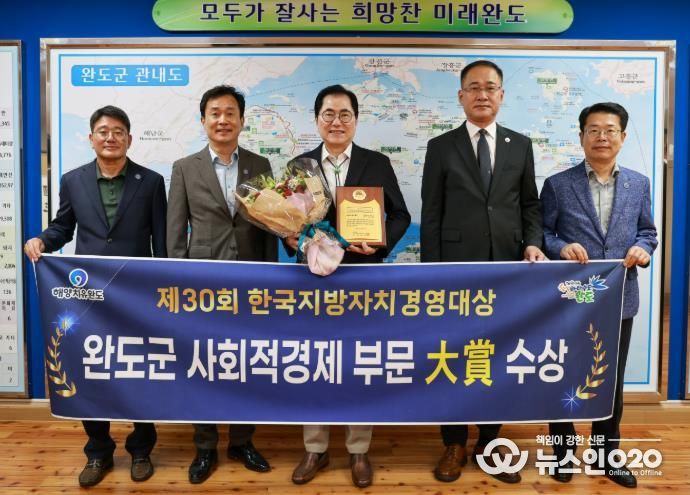 (뉴스인020 = 김성길 기자) 완도군은 14일 서울 공군호텔에서 열린 '제30회 한국지방자치경영대상' 시상식에서 사회적 경제의 저변을 확대하고 주민 참여형 순환 경제 모델을 정착시킨 공로를 인정받아 ‘대상’을 수상했다.