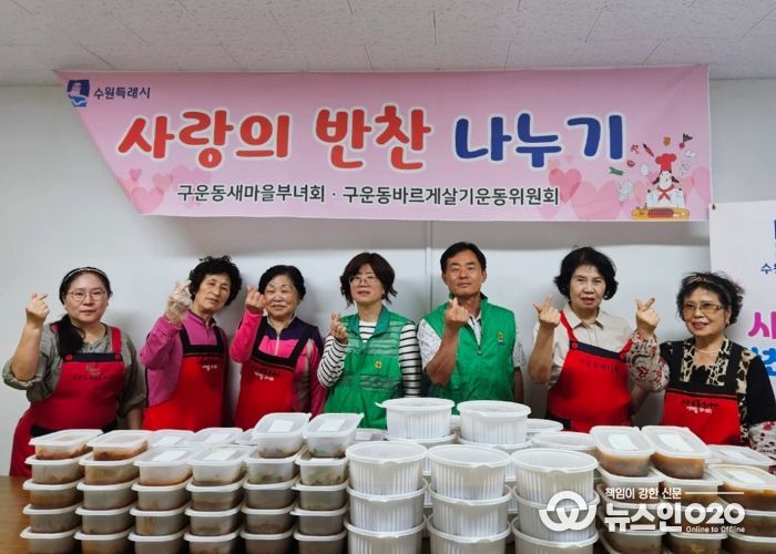 (뉴스인020 = 기자) 수원시 권선구 구운동 새마을부녀회는 지난 15일, 관내 어려운 이웃 26가구를 대상으로 반찬을 만들어 후원하는 ‘사랑의 반찬 나누기’ 봉사활동을 진행했다.