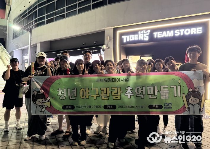 (뉴스인020 = 김성길 기자) 무안군청년플랫폼(센터장 김상준)은 지난 9월 20일 광주기아챔피언스필드에서 ‘청년과 함께하는 야구관람’ 네트워킹데이를 진행했다. 이번 행사는 무안 청년 25명이 함께해 응원과 교류 속에 즐거운 추억을 쌓는 뜻깊은 시간이었다.