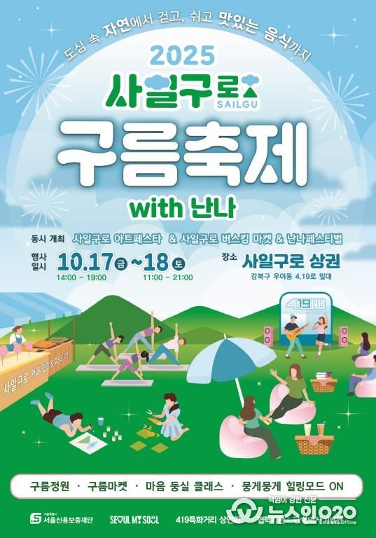 여기에 ‘뭉게뭉게 힐링모드 ON’ 스탬프 투어, 포토존, 그리고 ‘사일구로 카페 팝업’과 ‘사일구로 북한산 농장’ 등의 콘셉트로 꾸며진 푸드존까지 더해져, 주민과 방문객이 함께 먹고 쉬며 즐길 수 있는 지역 축제로 꾸며진다.