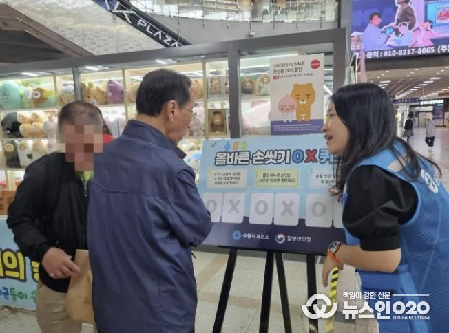 (뉴스인020 = 기자) 수원시보건소는 ‘세계 손씻기의 날’(10월 15일)을 맞아 15일 수원역 2층 대합실에서 감염병 예방 캠페인을 펼쳤다.