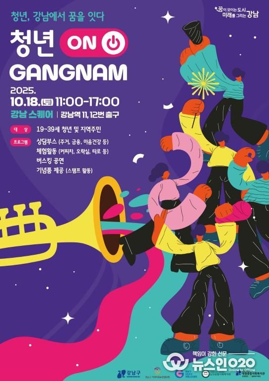 (뉴스인020 = 김성길 기자) 꿈이 모이는 도시, 미래를 그리는 강남구가 오는 10월 18일 오전 11시부터 오후 5시까지 강남역 11번·12번 출구 앞 강남스퀘어에서 ‘청년 고독사 예방 거리 캠페인, 청년 ON 강남’ 행사를 개최한다. 이번 행사는 사회적 고립을 겪는 청년 문제에 대한 인식을 확산하고, 강남구의 청년 대상 정책과 지원 서비스를 보다 많은 이들에게 알리기 위한 취지로 기획됐다.
