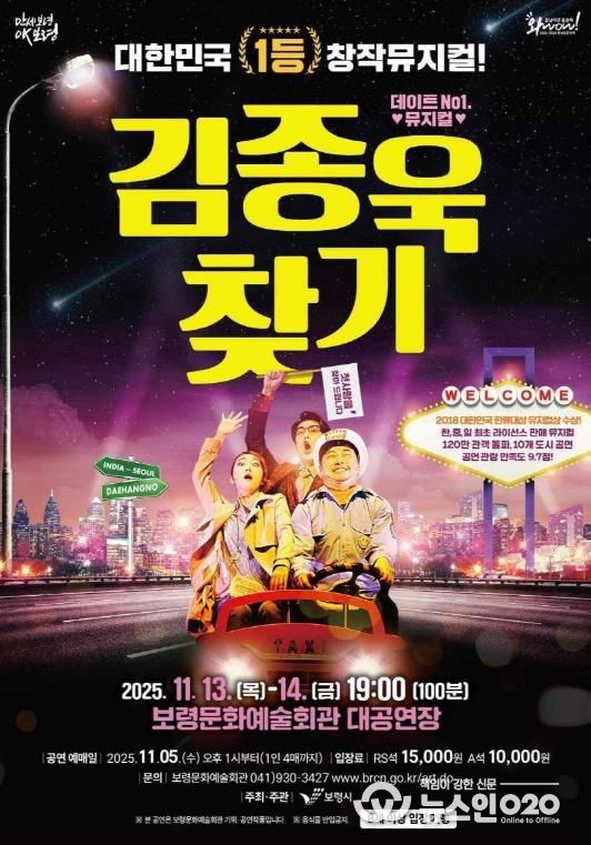 (뉴스인020 = 김성길 기자) 보령시가 11월 13일부터 14일까지 이틀간 오후 7시 보령문화예술회관 대공연장에서 뮤지컬 ‘김종욱 찾기’ 공연을 개최한다.