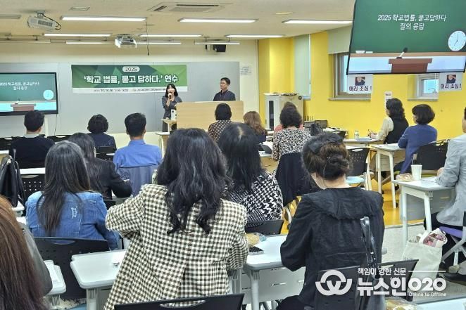 (뉴스인020 = 김성길 기자) 경기도고양교육지원청 교권보호지원센터는 2025년 10월 16일 고양미래인재교육센터에서‘학교 법률, 묻고 답하다’연수를 실시했다. 이번 연수는 교원의 교육활동 보호를 위한 법률 이해를 높이고, 학교 현장에서 발생할 수 있는 다양한 법적 사안에 대한 대응 역량을 강화하기 위해 마련됐다.