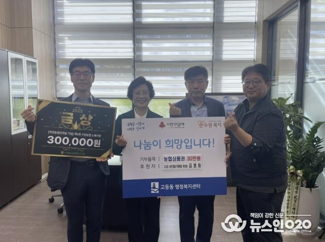 이번 기부는 관내 어려운 이웃들에게 따뜻한 나눔을 전하고자 하는 개인의 뜻에 따라 전달된 상품권은 고등동 관내 취약계층에게 지원될 예정이다.