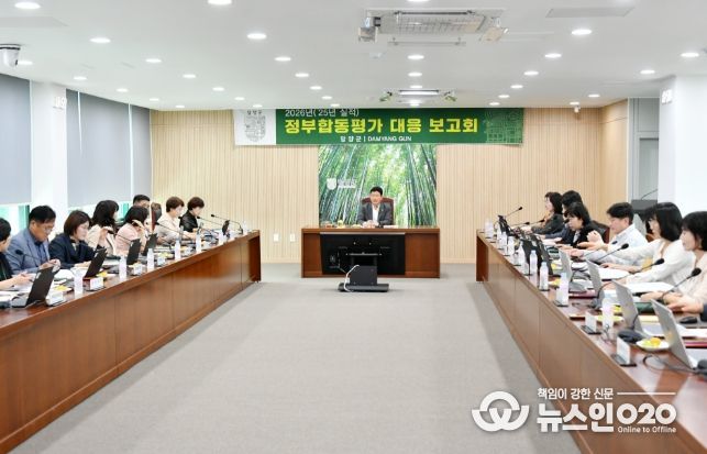 (뉴스인020 = 김성길 기자) 담양군은 2026년(2025년 실적) 지방자치단체 합동평가에서 3년 연속 우수기관으로 선정되기 위해 지난 16일 이정국 부군수 주재로 추진상황 보고회를 열었다.