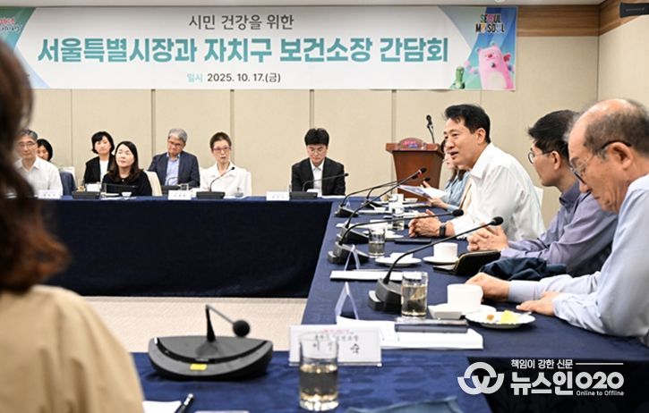 (뉴스인020 = 김성길 기자) 오세훈 서울시장이 17일 오후 12시 서울시청 간담회장(8층)에서 자치구 보건소장들과 ‘건강도시 서울 종합계획- 더 건강한 서울 9988’의 실효성 있는 추진과 서울시민 건강증진을 위한 협력방안을 논의했다.