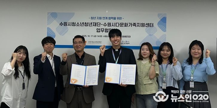 (뉴스인020 = 기자) 수원시청년지원센터는 지난 10월 17일 수원시다문화가족지원센터와 상호 교류 및 연계협력을 위한 업무협약을 체결했다.