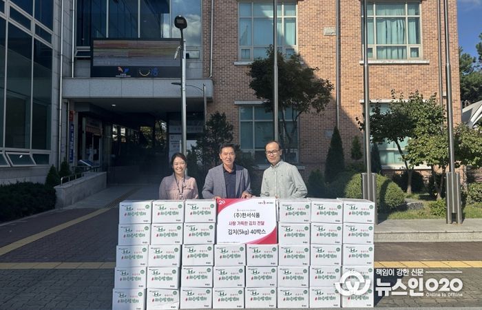 (뉴스인020 = 김성길 기자) 시흥시 정왕본동에 있는 ㈜한서식품은 지난 10월 16일 정왕본동 행정복지센터(동장 박래천)의 어려운 이웃을 위해 김치(5kg) 40상자를 기부했다.