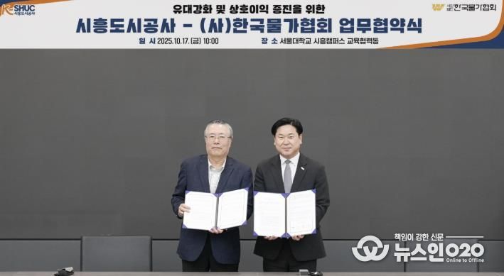 (뉴스인020 = 김성길 기자) 시흥도시공사는 지난 17일 기획재정부 허가로 설립된 전문가격조사·원가계산용역기관인 한국물가협회와 지역 공공개발사업의 협력을 목표로 하는 업무협약을 체결했다고 밝혔다.