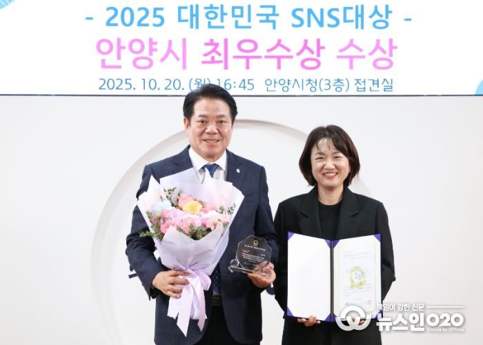 (뉴스인020 = 김성길 기자) 안양시가 ‘제15회 2025 대한민국 SNS 대상’ 기초지방자치단체 시 부문에서 최우수상을 수상했다.