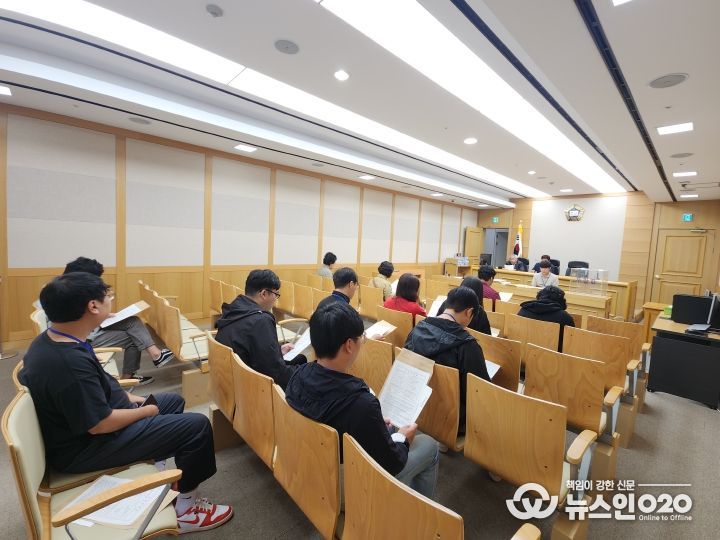 (뉴스인020 = 김성길 기자) (재)충청남도평생교육인재육성진흥원 충남청년센터가 운영하는 공주시 청년도전지원사업 참여 청년들이 최근 대전지방법원 공주지원 부동산 경매법정을 방문해 평소 쉽게 접할 수 없는 경매 과정을 직접 경험했다.