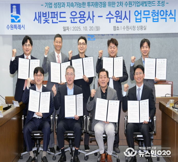 수원특례시는 20일 시청 상황실에서 2차 수원기업새빛펀드를 운용할 8개 사와 업무협약을 체결하고, 협력을 약속했다.