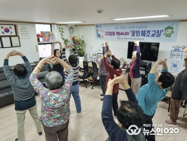 (뉴스인020 = 기자) 수원시 팔달구 화서2동 지역사회보장협의체는 지난 21일, 어르신들의 활기찬 노후와 건강증진을 위해 구구팔팔 백세시대 ‘꽃뫼 체조교실’을 화서주공4단지아파트 경로당에서 개최했다.