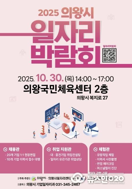 (뉴스인020 = 김성길 기자) 의왕시는 기업과 구직자가 함께 하는 채용의 장(場)인 ‘2025년 하반기 의왕시 일자리박람회’를 10월 30일 오후 2시부터 5시까지 의왕국민체육센터에서 개최한다고 밝혔다.