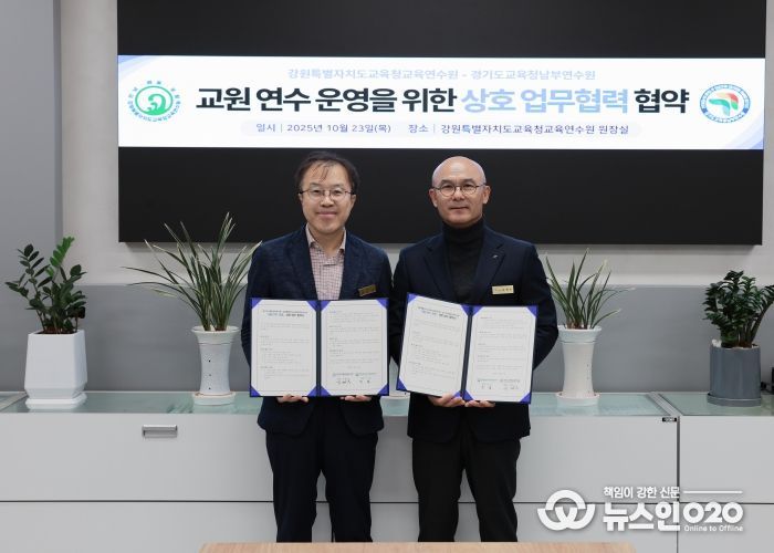 (뉴스인020 = 김성길 기자) 경기도교육청남부연수원이 23일 강원특별자치도교육청교육연수원과 교원 연수 협력을 위한 업무협약(MOU)을 체결했다.