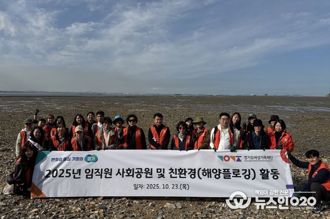 (뉴스인020 = 김성길 기자) 경기도여성가족재단은 23일 화성시 고온항 및 궁평항 일대에서 임직원 36명이 참여한 가운데 ‘2025년 사회공헌 및 친환경 활동’(해양 플로깅)을 펼쳤다.