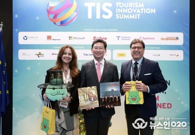 (뉴스인020 = 김성길 기자) 이상일 용인특례시장은 23일 오후(현지 시간) '관광 혁신 서밋(Tourism Innovation Summit) 2025'가 열리고 있는 스페인 세비야의 피베스에서 호세 루이스 산스 세비야 시장에게 용인을 알리는 특별한 선물을 전달했다.