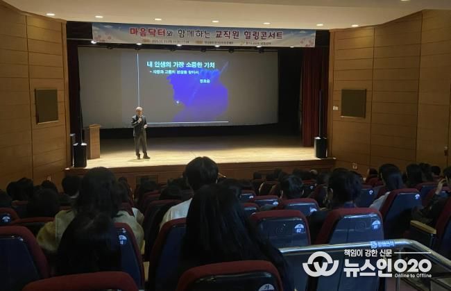 (뉴스인020 = 김성길 기자) 여주교육지원청은 10월 23일, 명성황후생가유적지 문예관에서 '마음닥터와 함께하는 교직원 힐링콘서트'를 개최하여 관내 교직원들에게 명사 강연과 아카펠라 공연을 통해 마음 건강을 회복하는 기회를 제공했다.