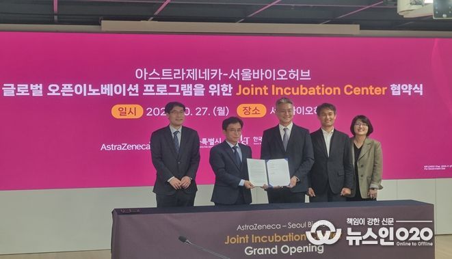 서울시는 10월 27일 서울바이오허브에서 한국아스트라제네카㈜와 ‘서울-아스트라제네카 공동 인큐베이션 센터(Joint Incubation Center)’ 조성을 위한 업무협약을 체결했다고 밝혔다.