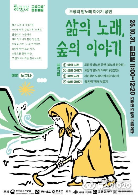 (뉴스인020 = 김성길 기자) 화순의 들녘에서 불리던 노동요 ‘밭노래’가 주민들의 목소리로 다시 울려 퍼진다.