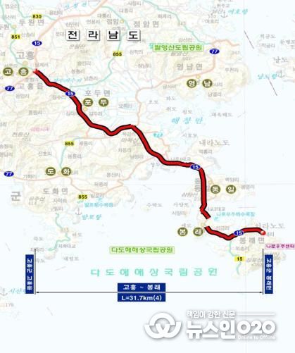 (뉴스인020 = 김성길 기자) 고흥군은 30일 국토교통부가 '제5차 국도・국지도 건설계획 (2021~2025)'을 변경·고시함에 따라 ‘국도 15호선 고흥~봉래 확장사업’의 신속한 추진이 탄력을 받게 됐다고 밝혔다.