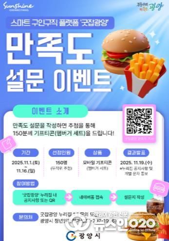 이번 설문조사는 굿잡광양의 이용 편의성, 정보 정확도, 서비스 만족도 등을 점검하고 향후 개선 방향을 모색하기 위한 것으로, 11월 1일부터 11월 16일까지 진행된다.
