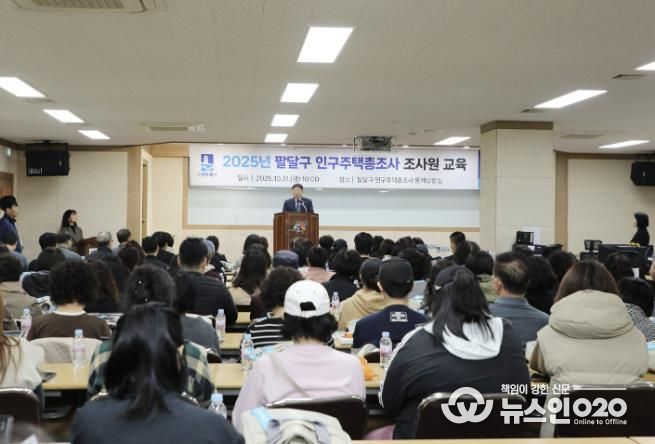 (뉴스인020 = 기자) 수원시 팔달구는 지난 10월 31일, 영동시장 소재 28청춘몰 영동아트홀에서 조사원 121명을 대상으로 ‘2025년 인구주택총조사 조사원 사전준비 교육’을 실시했다.