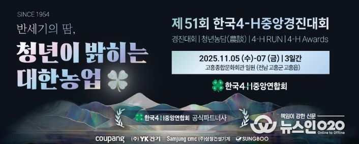 (뉴스인020 = 김성길 기자) 고흥군은 오는 11월 5일부터 7일까지 3일간, 고흥문화회관 일원에서 ‘제51회 한국4-H중앙경진대회’를 개최한다고 밝혔다.