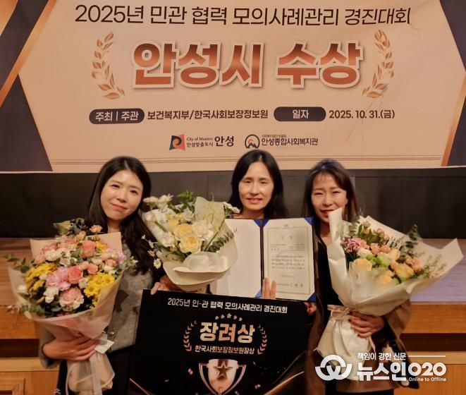 (뉴스인020 = 김성길 기자) 안성시는 지난 31일 보건복지부와 한국사회보장정보원이 주관한'민‧관 협력 모의사례관리 경진대회'에서 장려상을 수상했다고 밝혔다.